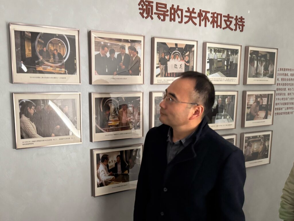 在专业讲解员的引领下,团员青年们仿佛穿越时空,置身于那个充满匠人精神的年代。他们沿着笔墨制作的流程,一步步探寻非遗技艺的奥秘。从原材料的精心挑选,到每一道工序的细致雕琢,每一个环节都凝聚着匠人们的智慧与心血。除了了解制作流程,大家还聆听了笔墨与历史人物之间的传奇故事。那些曾经在历史长河中留下浓墨重彩一笔的人物,与这小小的笔墨之间竟有着千丝万缕的联系。这些故事,让团员青年们对笔墨文化有了更深刻的认识,也感受到了传统文化背后所蕴含的强大生命力。